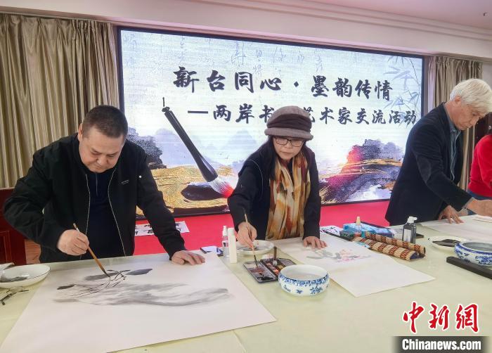 中新社烏魯木齊3月29日電 (胡嘉琛)來自臺灣的書畫家29日在烏魯木齊市與新疆十余名書畫家同場創(chuàng)作,共譜翰墨之情。