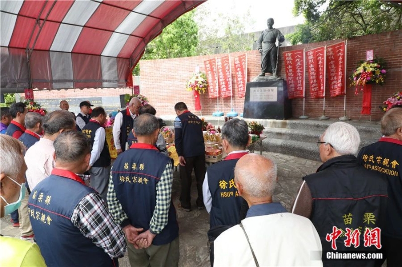 4月3日上午,“1895乙未年抗日英雄徐驤烈士逝世130周年”追思祭拜典禮在臺灣苗栗縣頭份市徐驤紀念公園舉辦。(中新社記者 楊程晨 攝)