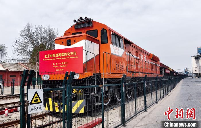 中新網(wǎng)北京4月7日電 (記者 陳杭)7日,隨著一聲汽笛長鳴,一列滿載機(jī)械設(shè)備、藥品、自行車配件等貨物的國際貨運(yùn)班列從北京房山區(qū)琉璃河金隅鐵路專用線緩緩駛出,標(biāo)志著北京至中亞地區(qū)的國際鐵路貨運(yùn)班列正式進(jìn)入“常態(tài)化開行”新階段。