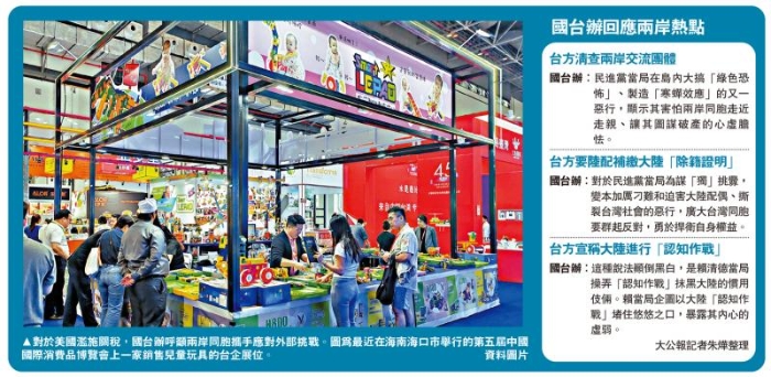 圖:對于美國濫施關稅,國臺辦呼吁兩岸同胞攜手應對外部挑戰(zhàn)。圖為最近在海南海口市舉行的第五屆中國國際消費品博覽會上一家銷售兒童玩具的臺企展位。\資料圖片