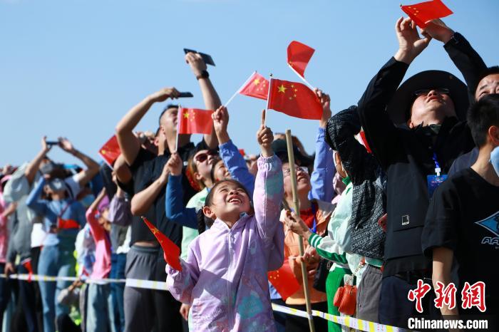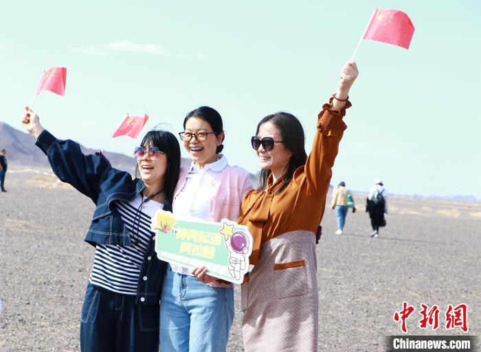 4月24日,航天愛好者手持國旗在觀禮點拍照留念。劉星 攝