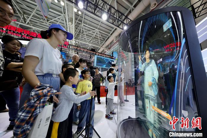 5月1日,福建福州,民眾與虛擬數(shù)字人物對話。中新社記者 王東明 攝