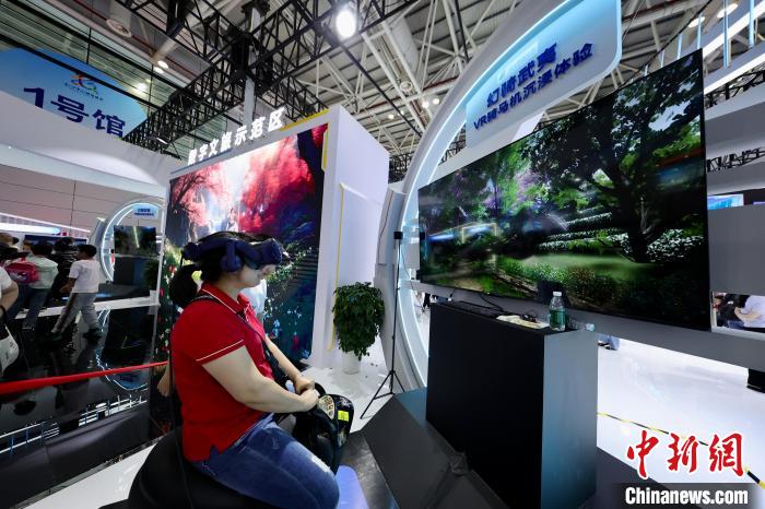 5月1日,福建福州,民眾戴vr眼鏡沉浸式體驗騎馬游武夷。中新社記者 王東明 攝