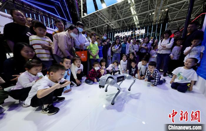 5月1日,福建福州,小朋友與智能機器狗親密接觸。中新社記者 王東明 攝