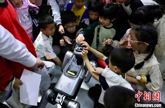 5月1日,福建福州,小朋友與機器人現(xiàn)場互動。中新社記者 王東明 攝
