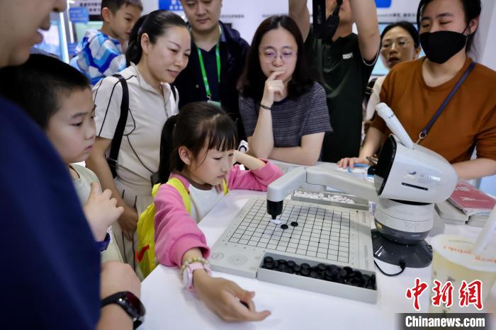 5月1日,福建福州,小朋友與智能機器人下棋。中新社記者 王東明 攝