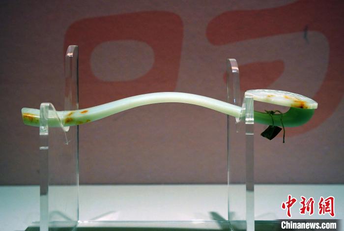 圖為展覽展出的四川博物院收藏的清乾隆“萬壽無疆”玉如意。中新社記者 安源 攝