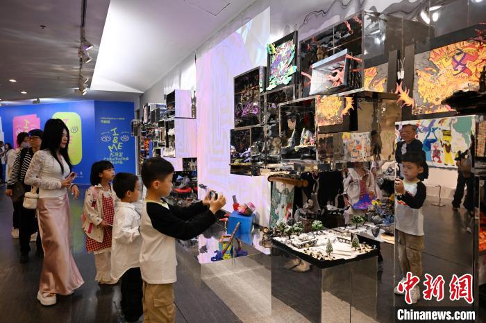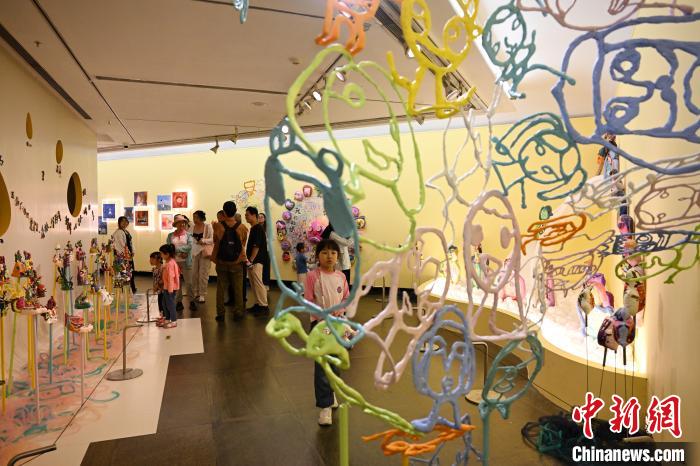 5月11日,“萬語國:I & ME 廣東美術(shù)館2025收藏童年系列展”吸引參觀者。近日,該展覽在位于廣州市二沙島的廣東美術(shù)館展出,現(xiàn)場(chǎng)共27組作品,藝術(shù)類型包括有雕塑、錄像、裝置、水墨、動(dòng)畫、音頻、繪本等。中新社記者 陳楚紅 攝
