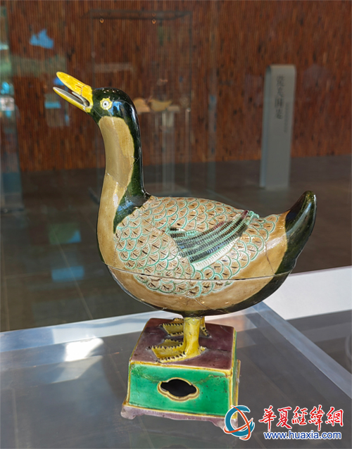 景德鎮(zhèn)御窯博物館展示的明代素三彩鴨形香薰。(攝影:虞鷹)