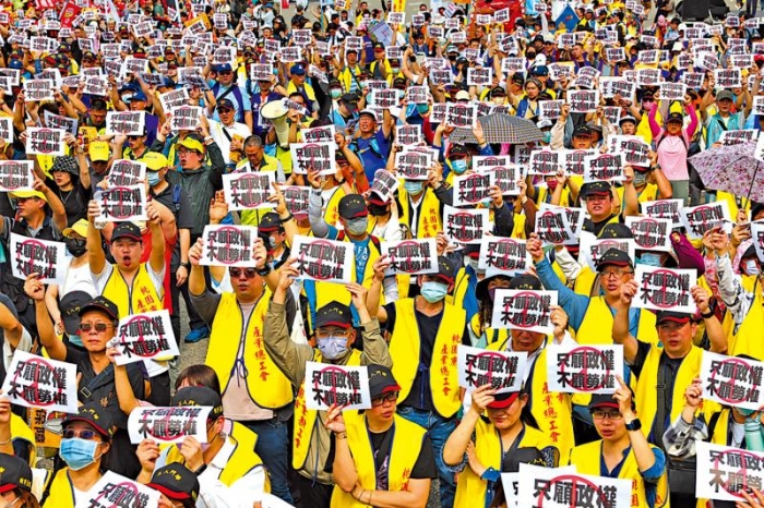 圖:民進黨當局對關(guān)稅問題束手無策,只顧搞“大罷免”。臺灣勞工團體“五一”舉行游行,批評民進黨當局只顧政權(quán)、不顧勞權(quán)。\資料圖片