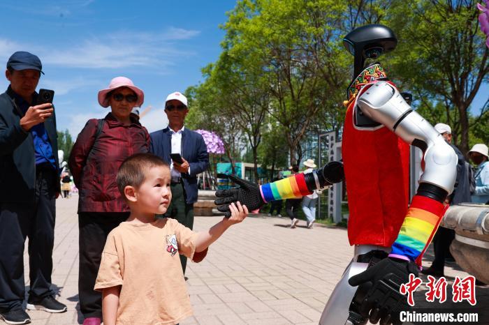 圖為小朋友與人形機器人互動。中新社記者 薛蒂 攝