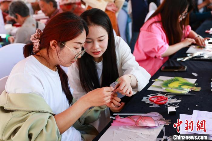 圖為現場展示河湟皮影制作技藝。中新社記者 薛蒂 攝