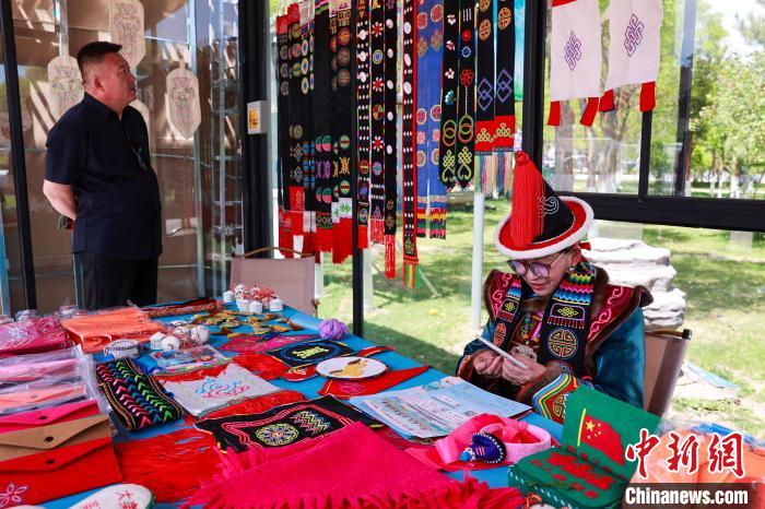 圖為現場展示蒙古族刺繡。中新社記者 薛蒂 攝