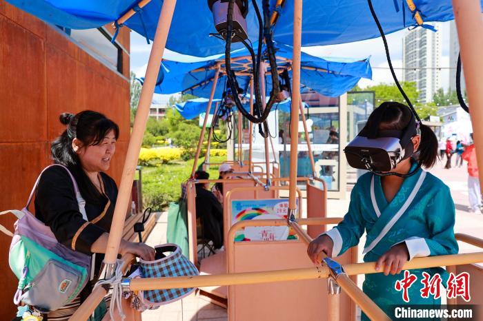 圖為小朋友體驗VR“飛躍青海湖”。中新社記者 薛蒂 攝