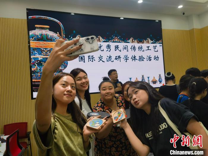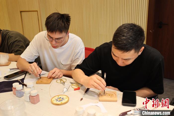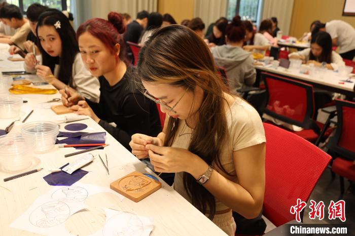圖為留學(xué)生體驗(yàn)景泰藍(lán)杯墊制作。中新社記者 林馨 攝