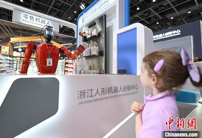 5月22日,小朋友在“數(shù)智中東歐”展區(qū)觀看零售機(jī)器人操作,“數(shù)智中東歐”集中呈現(xiàn)了中東歐國(guó)家與中國(guó)在人工智能、機(jī)器人技術(shù)、通航科技等領(lǐng)域的前沿探索。當(dāng)日,第四屆中國(guó)—中東歐國(guó)家博覽會(huì)暨國(guó)際消費(fèi)品博覽會(huì)在浙江寧波啟幕。博覽會(huì)以“向新 向?qū)?向未來”為主題,設(shè)置“數(shù)智中東歐”“魅力中東歐”“精品中東歐”,以及出口消費(fèi)品展區(qū),展會(huì)總規(guī)模達(dá)8萬平方米,來自14個(gè)國(guó)家的8000余種特色商品亮相。中新社記者 王剛 攝