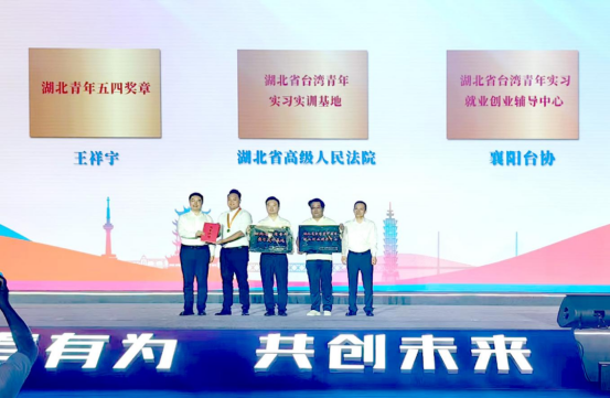 現(xiàn)場舉行頒授儀式,為王祥宇頒授“湖北省五四青年獎章”,為湖北省高級人民法院及襄陽臺協(xié)分別頒授“湖北省臺灣青年實習實訓基地”“湖北省臺灣青年實習就業(yè)輔導中心”牌匾。