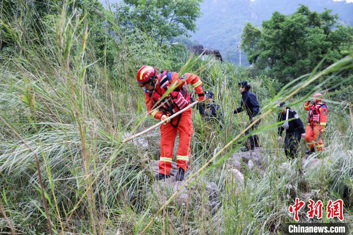據(jù)介紹,由于受災(zāi)范圍廣、地形復(fù)雜,現(xiàn)場(chǎng)9個(gè)搜救小組在當(dāng)?shù)卮甯刹肯驅(qū)ьI(lǐng)下,采取“水陸空”結(jié)合的方式展開(kāi)行動(dòng):水上搜救組駕駛沖鋒艇沿河道巡查,重點(diǎn)排查被沖毀的橋梁、堤岸等危險(xiǎn)區(qū)域;陸地搜救組攜帶搜救犬徒步沿河岸兩側(cè)推進(jìn),利用繩索、鐵鍬等工具清理障礙,逐步排查;空中監(jiān)測(cè)組通過(guò)無(wú)人機(jī)進(jìn)行高空巡查,實(shí)時(shí)傳回畫(huà)面,為地面救援提供精準(zhǔn)指引,開(kāi)展拉網(wǎng)式搜索從三舍村部受災(zāi)山谷處至河道下游。