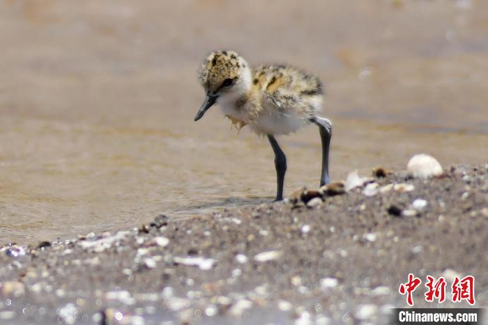 6月3日,一只黑翅長(zhǎng)腳鷸在水邊呼喚鳥(niǎo)寶寶。時(shí)值夏日,位于山東省青島市城陽(yáng)區(qū)河套街道的一處濕地內(nèi),燕鷗、黑翅長(zhǎng)腳鷸等候鳥(niǎo)集中進(jìn)入孵化期,初生的鳥(niǎo)寶寶在水邊悠然覓食、萌態(tài)可掬,繪就一幅和諧的生態(tài)畫(huà)卷。王海濱 攝