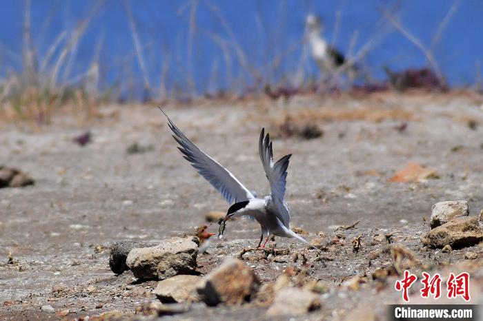 6月3日,一只燕鷗銜來(lái)小魚(yú)喂養(yǎng)鳥(niǎo)寶寶。王海濱 攝