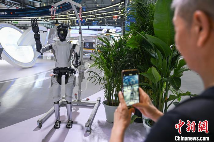 6月11日,四川成都,展館內(nèi)參觀(guān)者正用手機(jī)拍攝機(jī)器人。中新社記者 劉忠俊 攝