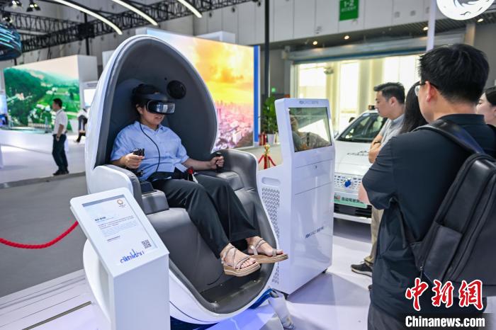 6月11日,四川成都,參觀(guān)者現(xiàn)場(chǎng)體驗(yàn)3D城市場(chǎng)景。中新社記者 劉忠俊 攝