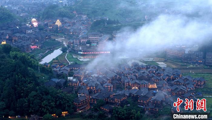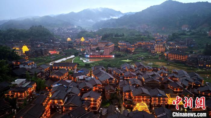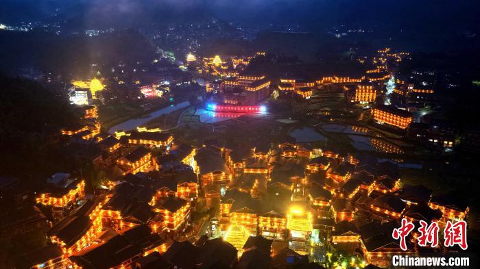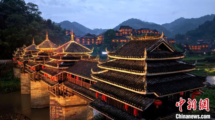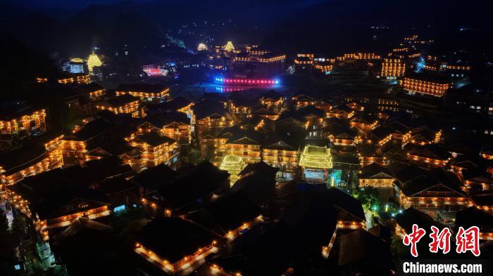 圖為夜幕下的程陽八寨。龔普康 攝