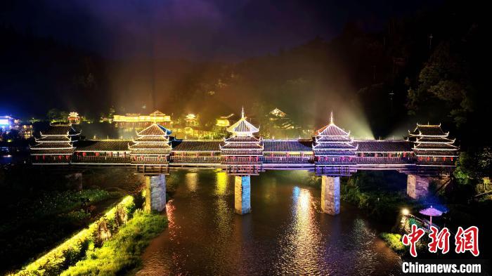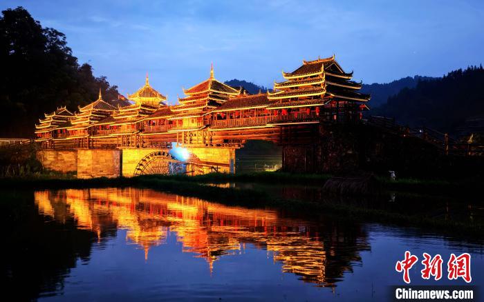 圖為程陽風(fēng)雨橋夜景。龔普康 攝