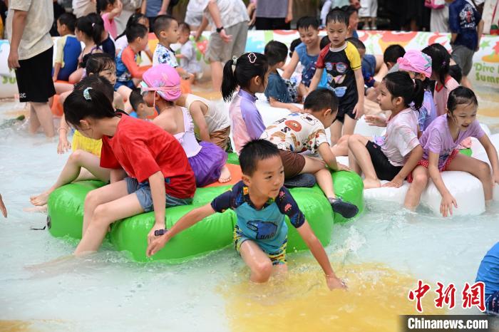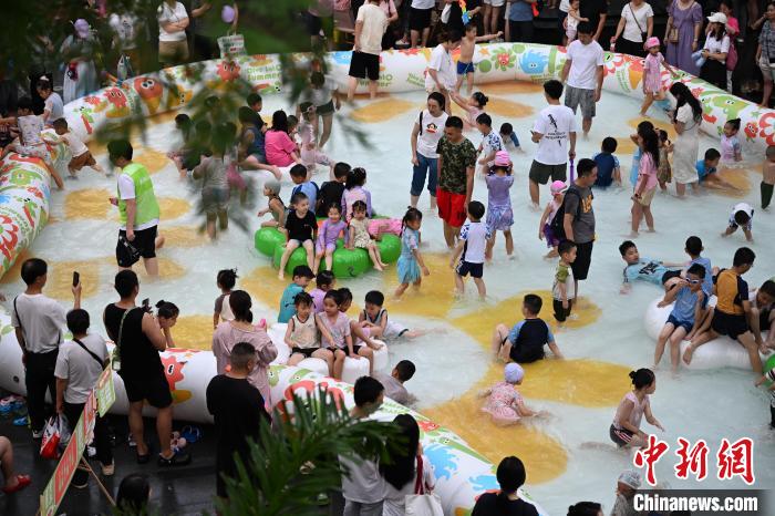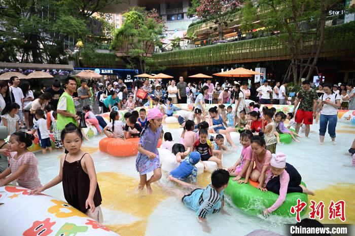 6月22日,四川成都一商業(yè)中心設(shè)置的水上樂園人氣旺,吸引不少孩童前來戲水度夏。中新社記者 張浪 攝