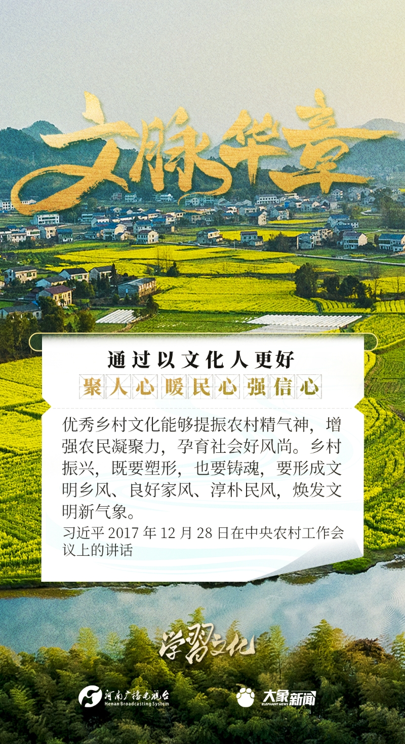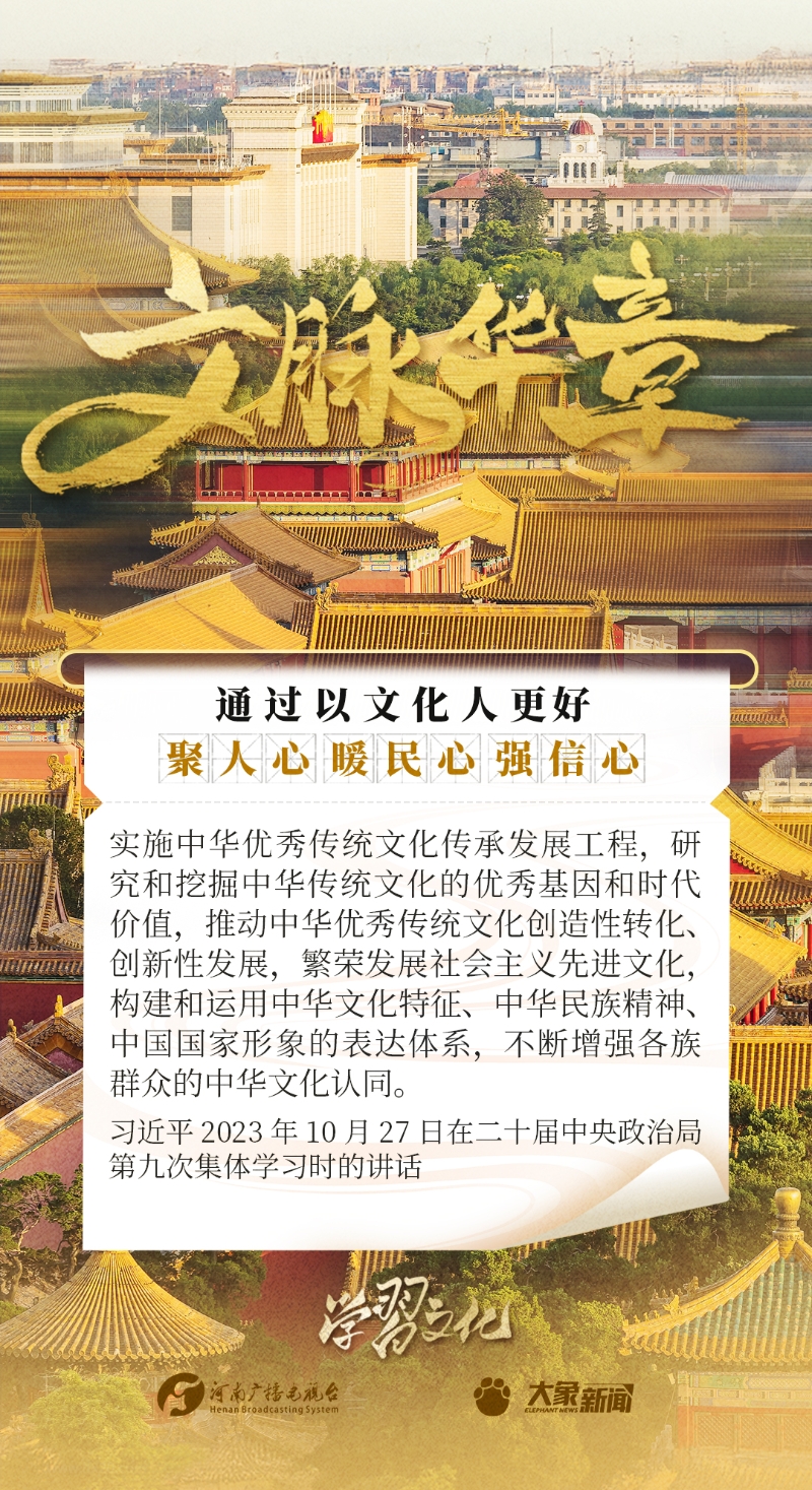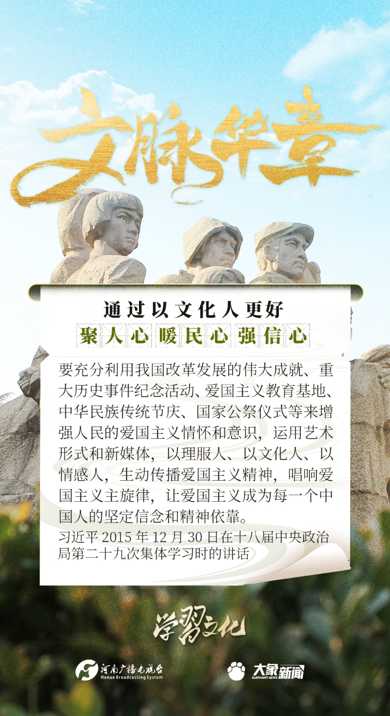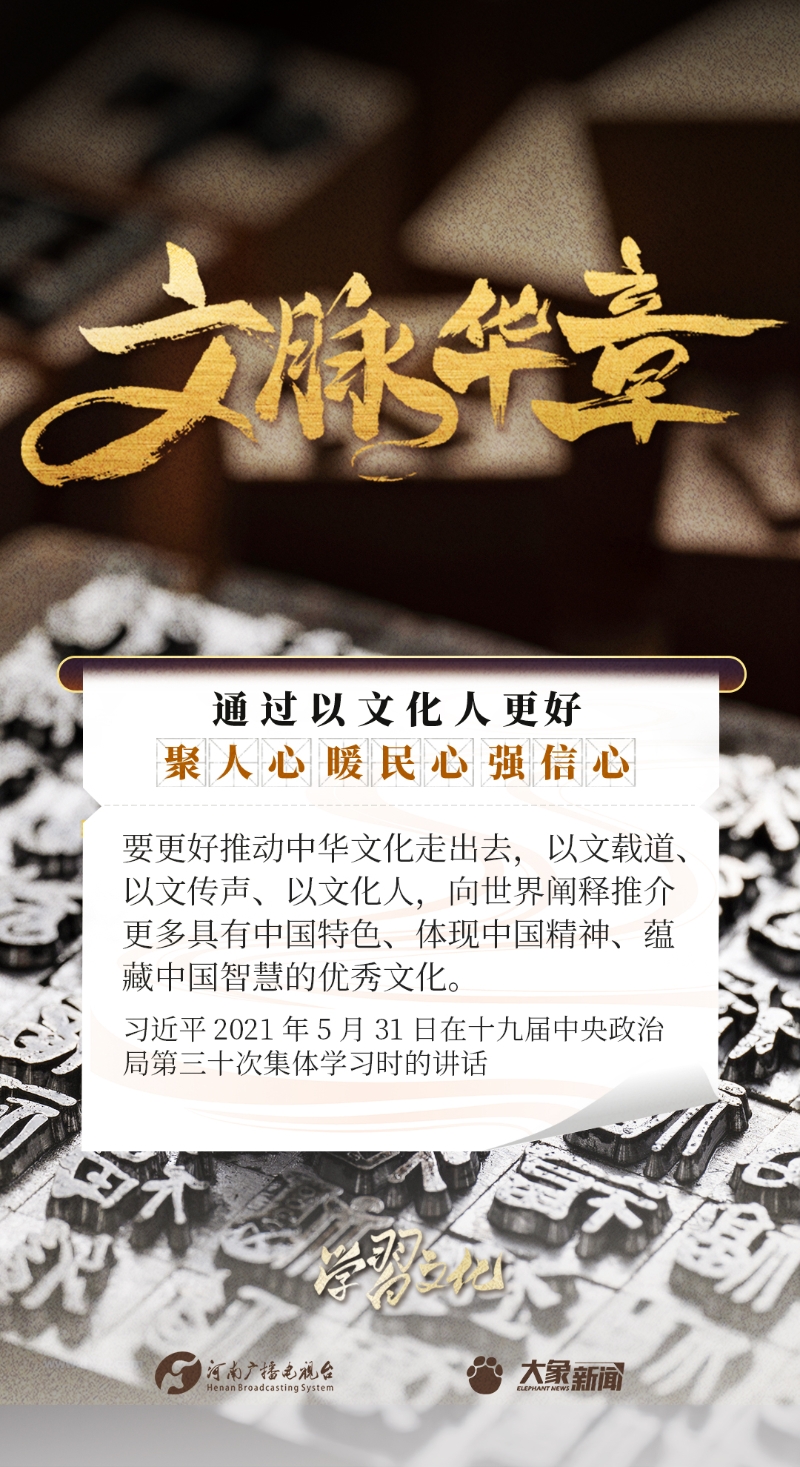 以文化人,是中華民族延續(xù)幾千年的一個傳統(tǒng),也是增強(qiáng)民族凝聚力、民族自豪感的重要依托。習(xí)近平總書記一貫倡導(dǎo)以文化人,激發(fā)廣大干部群眾改革創(chuàng)新、振興發(fā)展的激情和斗志,發(fā)表了一系列重要講話,大象新聞邀您一起學(xué)思踐悟。
