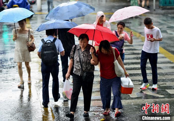 7月7日,福建福州,民眾在雨中出行。當(dāng)日,受今年第4號(hào)臺(tái)風(fēng) “丹娜絲”影響,福州迎來降雨。據(jù)福建省氣象臺(tái)預(yù)測(cè),臺(tái)風(fēng)中心將以每小時(shí)15公里左右的速度向北偏東方向移動(dòng),8日早晨起轉(zhuǎn)向西偏南方向移動(dòng),逐漸向浙江臺(tái)州至福建寧德一帶沿??拷⒂?日下午到夜間在浙江臺(tái)州至福建寧德一帶沿海登陸。中新社記者 張斌 攝