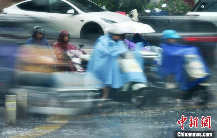7月7日,福建福州,民眾在雨中出行。當(dāng)日,受今年第4號(hào)臺(tái)風(fēng) “丹娜絲”影響,福州迎來降雨。據(jù)福建省氣象臺(tái)預(yù)測(cè),臺(tái)風(fēng)中心將以每小時(shí)15公里左右的速度向北偏東方向移動(dòng),8日早晨起轉(zhuǎn)向西偏南方向移動(dòng),逐漸向浙江臺(tái)州至福建寧德一帶沿??拷?,并于8日下午到夜間在浙江臺(tái)州至福建寧德一帶沿海登陸。中新社記者 張斌 攝