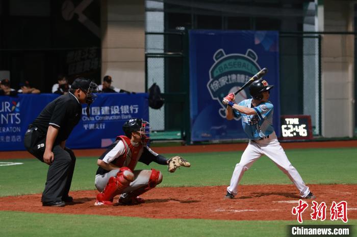 7月9日,浙江平湖,兩岸青年棒球隊員在徐家埭國際棒球場比賽。中新社發(fā) 孫楊洋 攝