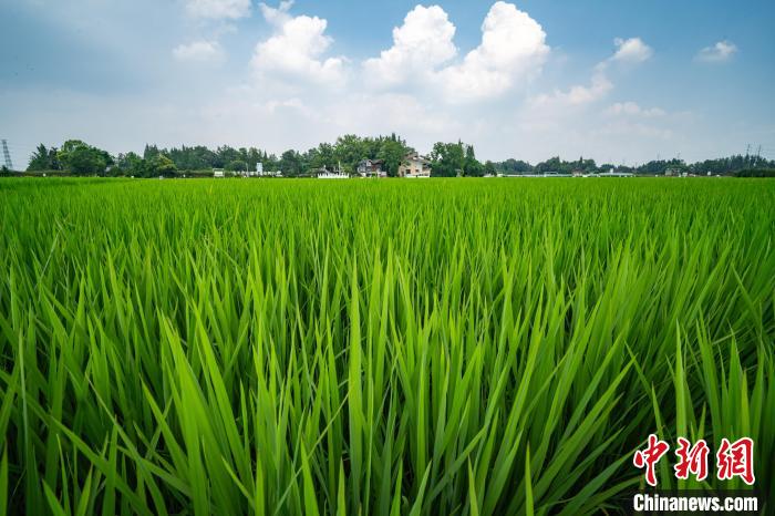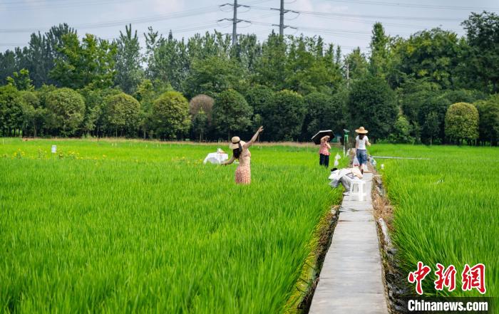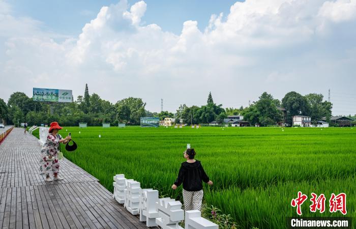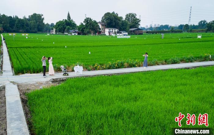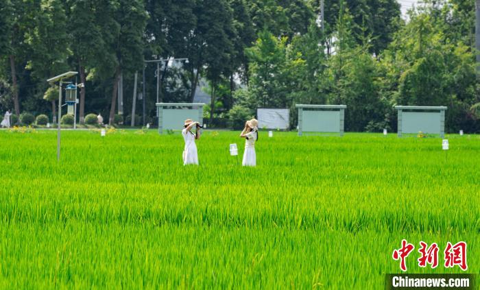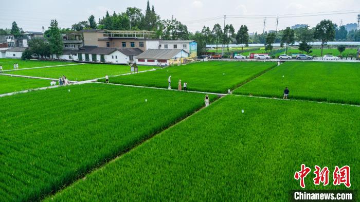 四川成都:稻田如“綠色海洋”引游人打卡