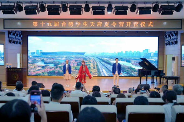 7月12日,第十五屆臺(tái)灣學(xué)生天府夏令營(yíng)開營(yíng)儀式在成都石室中學(xué)舉行?;顒?dòng)以“青春有約看四川·蜀里同品‘三九大’”為主題,邀請(qǐng)140余位兩岸師生參與。