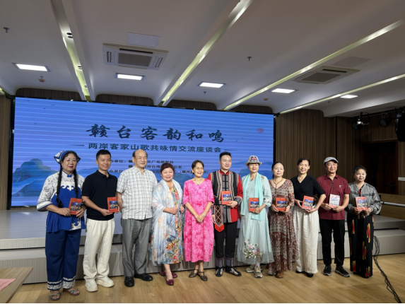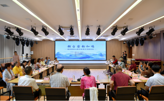 華夏經(jīng)緯網(wǎng)訊:7月15日,贛臺客韻和鳴——兩岸客家山歌共詠情交流座談會在江西省贛州市文化館舉行。來自臺灣客家山歌藝術(shù)團(tuán)與贛南客家山歌傳承發(fā)展研究會的20余名客家歌手歡聚一堂,圍繞兩岸客家山歌創(chuàng)作與傳承展開深入交流。