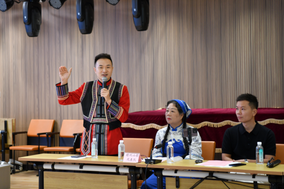 座談會上,贛臺兩地的客家歌手分別作了交流發(fā)言,探討客家山歌的創(chuàng)作經(jīng)驗(yàn)和心得體會。圍繞客家山歌傳統(tǒng)腔調(diào)的唱法展開熱烈討論,從唱腔的獨(dú)特韻味到演唱時(shí)的氣息運(yùn)用,從傳統(tǒng)曲目的經(jīng)典演繹到現(xiàn)代元素的融合創(chuàng)新,大家暢所欲言、氣氛熱烈。臺灣客家山歌藝術(shù)團(tuán)的歌手們現(xiàn)場分享了《老腔山歌》《山歌子》《平板》等傳統(tǒng)客家山歌的唱法;贛州客家歌手們討論到動情處,清唱了《打支山歌過橫排》《牛牯調(diào)》《客家之歌》等經(jīng)典客家山歌曲目。