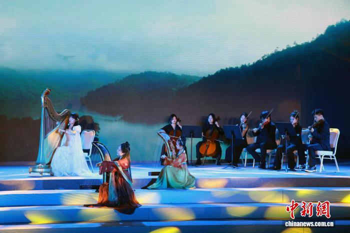 7月19日,表演者演奏樂器。當晚,“秀山麗水·飛越夢想”國際詩會在浙江麗水舉行,來自海內(nèi)外的留學生、華僑代表及文藝工作者相聚一堂,以中外經(jīng)典詩篇朗誦為核心,融入歌舞演繹、民族服飾走秀、器樂合奏和非遺技藝展示等多元形式,誦經(jīng)典、展風采、傳文化。孫楊洋 攝
