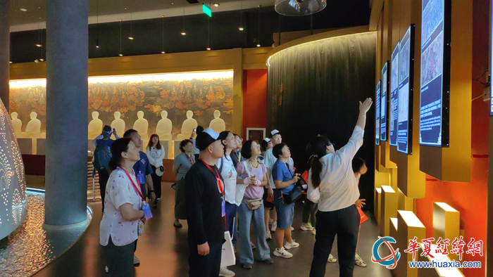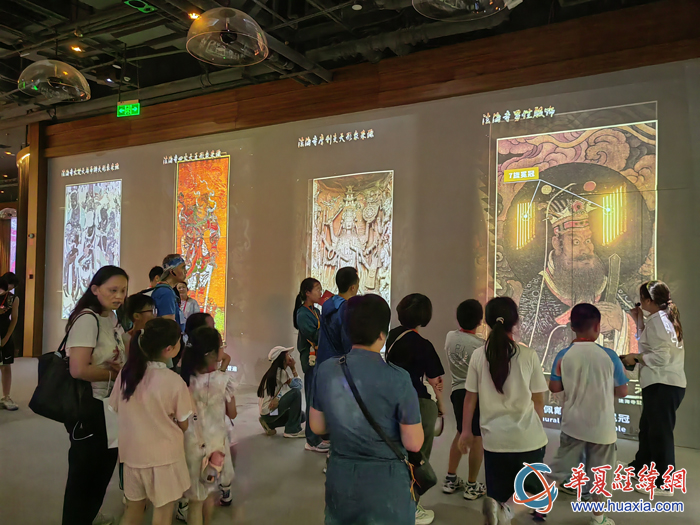 近日,第二屆在京臺胞中小學(xué)生暑期研學(xué)活動在北京舉辦。7月21日,研學(xué)營一行在石景山探訪法海寺壁畫藝術(shù)館,通過館內(nèi)的4K高清顯示屏,仔細(xì)欣賞原比例還原的法海寺明代壁畫真跡。特別是標(biāo)志性的“水月觀音”像,可通過高清屏幕清晰看到觀音身上白色披紗“瀝粉貼金”等技術(shù)細(xì)節(jié)。