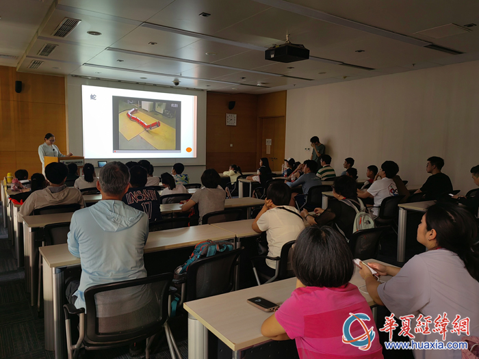 在中國科學院自動化研究所研究員、博士生導師趙曉光教授講解仿生機器人的講座上,研學營的孩子們聽課十分認真專注,還時不時提出自己的疑問。
