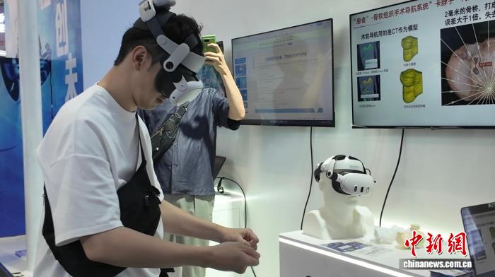 從創(chuàng)意生成到落地應用,人工智能領域不乏兩岸攜手的身影。走進艾生智慧(北京)醫(yī)療科技有限公司的展示區(qū),觀眾戴上AR眼鏡,瞬間從現(xiàn)實世界切換至虛擬手術臺。試著在工具臺上抓握手術刀,化身一位骨科醫(yī)生。該眼鏡搭載精準導航技術,應用在骨科手術領域,可有效減少誤差。