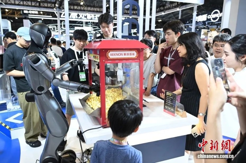 而人山人海的會場內(nèi),家長帶著小朋友參觀、體驗,也成為了一景。人形機器人、機器狗、大型機械裝置……“人工智能”這顆種子,可能已經(jīng)種在了他們心中……