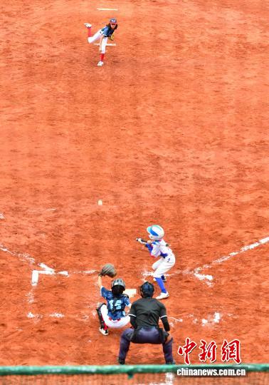 8月5日,2025年體彩杯海峽兩岸(連城)青少年棒球邀請賽暨第六屆海峽兩岸(連城)青少年棒球文化嘉年華在福建省龍巖市連城縣開賽。來自海峽兩岸暨港澳地區(qū)的10支棒球隊(duì)近200名青少年同臺競技,以球會友,享受“快樂棒球”。臺灣彰化紅不讓少棒隊(duì)選手(紅)與南平雄鷹少棒隊(duì)選手在比賽中。中新社記者 張斌 攝