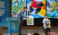 8月6日,河南安陽,參加“穿越古今 漢你相‘豫’”河南古都創(chuàng)享之旅的數(shù)十位臺灣網(wǎng)絡達人、自媒體從業(yè)者等在中國文字博物館尋找漢字根源。圖為臺灣網(wǎng)絡達人模仿書寫甲骨文。中新社記者 闞力 攝
