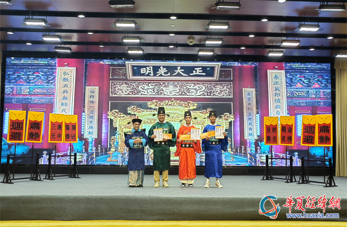 北京市臺聯(lián)名譽會長盧咸池為狀元、榜眼、探花頒發(fā)捷報和小金榜。(攝影:虞鷹)
