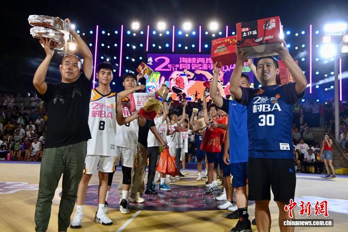 8月17日晚,第二屆海峽兩岸同名村“村BA”籃球邀請賽在福建省晉江市英林鎮(zhèn)東埔村落下帷幕。兩岸青年民俗運(yùn)動串燒表演和兩岸同名村交換締結(jié)友誼禮物儀式,共同為兩岸體育文化交流留下了難忘的一夜。本屆比賽共有24支來自兩岸同名村的球隊(duì)參賽,其中臺灣隊(duì)伍12支。圖為俯瞰比賽現(xiàn)場。(無人機(jī)照片)中新社記者 王東明 攝