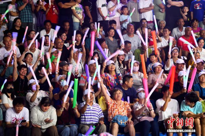 圖為臺灣鄉(xiāng)親跨海而來觀看比賽。中新社記者 王東明 攝