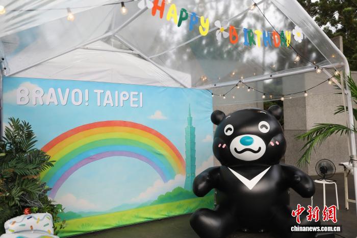 8月19日,臺(tái)北市吉祥物“熊贊”迎來(lái)十歲生日,該吉祥物以臺(tái)灣黑熊為形象。近日,臺(tái)北市政府觀光傳播局在大安森林公園露天音樂(lè)臺(tái)設(shè)置打卡點(diǎn)位,民眾可與6米高的“熊贊”玩偶及“熊贊小屋”合照留念。中新社記者 朱賀 攝