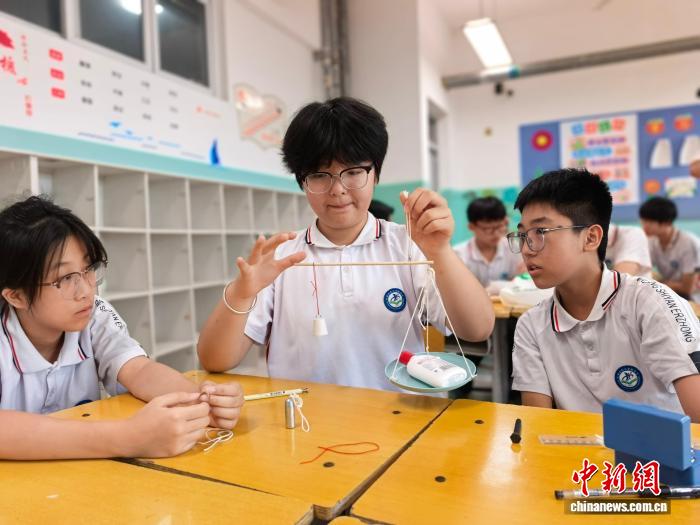 圖為武強(qiáng)縣中小學(xué)科學(xué)運(yùn)動(dòng)會(huì),參賽選手正在進(jìn)行杠稱稱量比賽。王天祥 攝