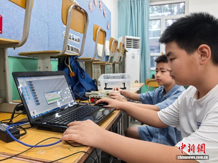 圖為武強(qiáng)縣中小學(xué)科學(xué)運(yùn)動(dòng)會(huì)機(jī)器人大賽,參賽選手正在為機(jī)器人輸入程序。王天祥 攝